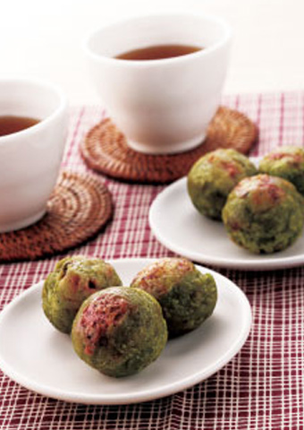 紅豆泥均勻倒入格子,像超美味章魚燒那樣把面糊煎成丸狀即可。