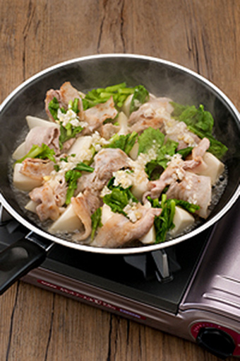 蕪菁可調節腸胃,促進消化吸收,而豬肉能減輕身體疲勞,加上新鮮檸檬,可以讓人從疲勞中迅速恢復過來,更能打起精神。蕪菁五花養生鍋可以除去活性酸素的有害物質,加速新陳代謝,讓身體恢復年輕與活力,從內而外暖和起來。